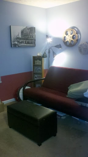 Actually, those pictures are a little older, because we had a smaller TV before. That flat screen was in our living room until Aaron finally found a big TV for a price I agreed with. And, before we got the big TV, the loft TV just sat on the floor. Crazy times.