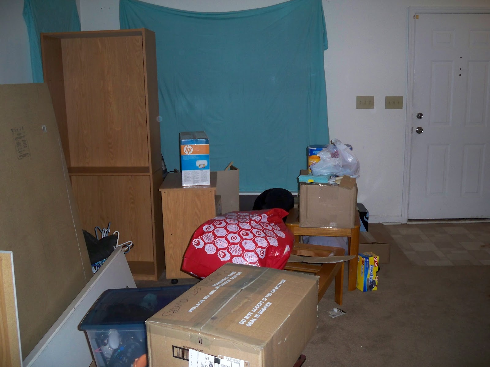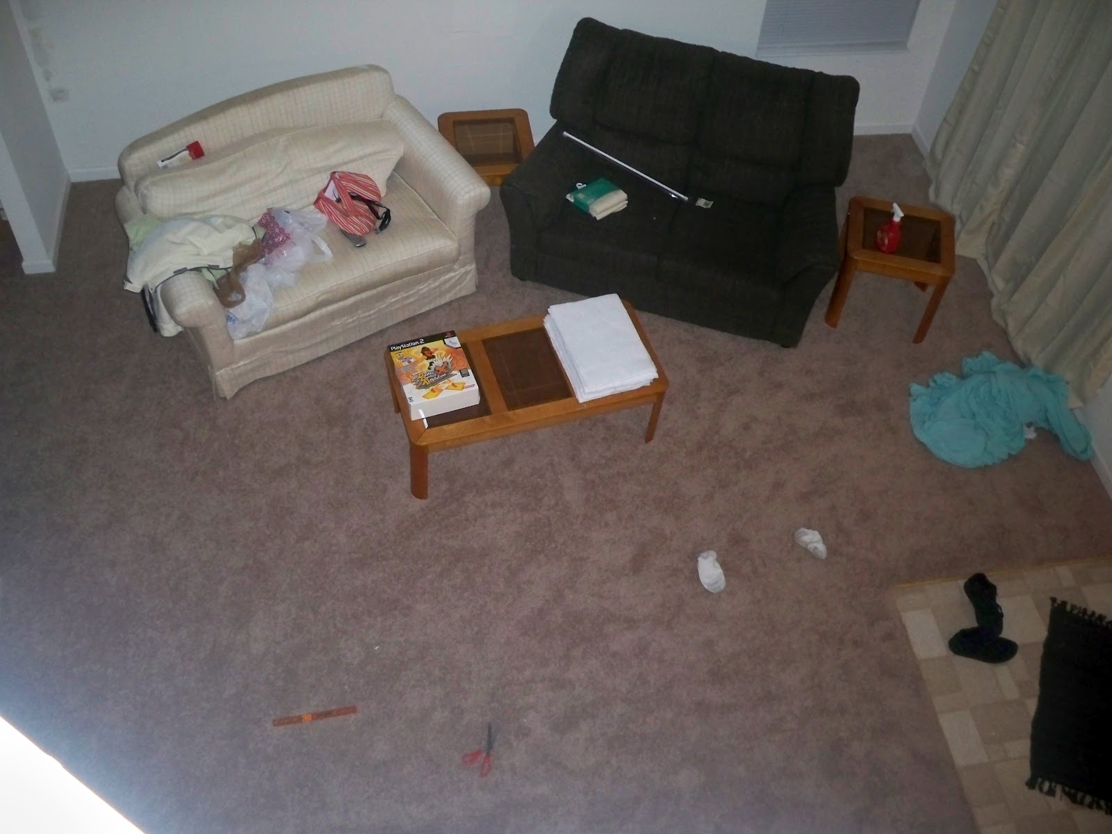 There are some lost photos that show the coffee table we bought and other small improvements. The next one I have is right before we replaced the flooring.