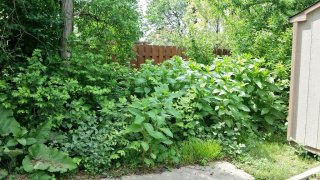 Disappointingly, every type of weed took advantage of this newly cleared space and grew like the Amazon forest of Indiana. The picture below is from early spring, when they sprung up seemingly overnight. These weeds grew taller than the shed before we got around to knocking them down. It’s enough to make you want to pave the whole thing.