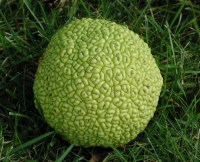 What are those? The fruit of the tree of the devil, in my opinion. Some people love them, but I’m unimpressed. The wood from these trees is very strong, making for good fences and bows. I’ve heard from one of our neighbors that the ones lining the west side of our lot are protected, and cannot be cut down. In the spring, all the buds fall off and make a mess of our driveway. I used the blower to clear them off every day, a task that Aaron thought to be futile. In the fall, these trees litter the ground with endless hedgeapples. The squirrels go crazy for them, and will carry many of the early ones off the driveway. They are mostly inedible for humans, but they are known to ward off spiders and other insects if you place them in your window and near doors.