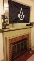 A few months back, we hosted a party for Aaron’s cousins. Having a theme was by no means necessary, but we chose Pirates all the same. The flag and statue are from Assassin’s Creed IV, and I just happened to see a gift set of Captain Morgan that came with cannonball cups. We made a pirate Spotify list (turns out there are a lot of pirate songs out there) found a bunch of rum drink recipes, and decorated the mantle. That was in march… and I’ve since added a pirate book and a bottle of rum to the mantle. I’m not sure what it says about who I am as a person that this still delights me greatly. Even better, Aaron has said nothing about taking it down, which is either a sign of his love or his indifference. I recently realized that whenever delivery people come to our door, their first glimpse in into the house reveals a gigantic black pirate flag…