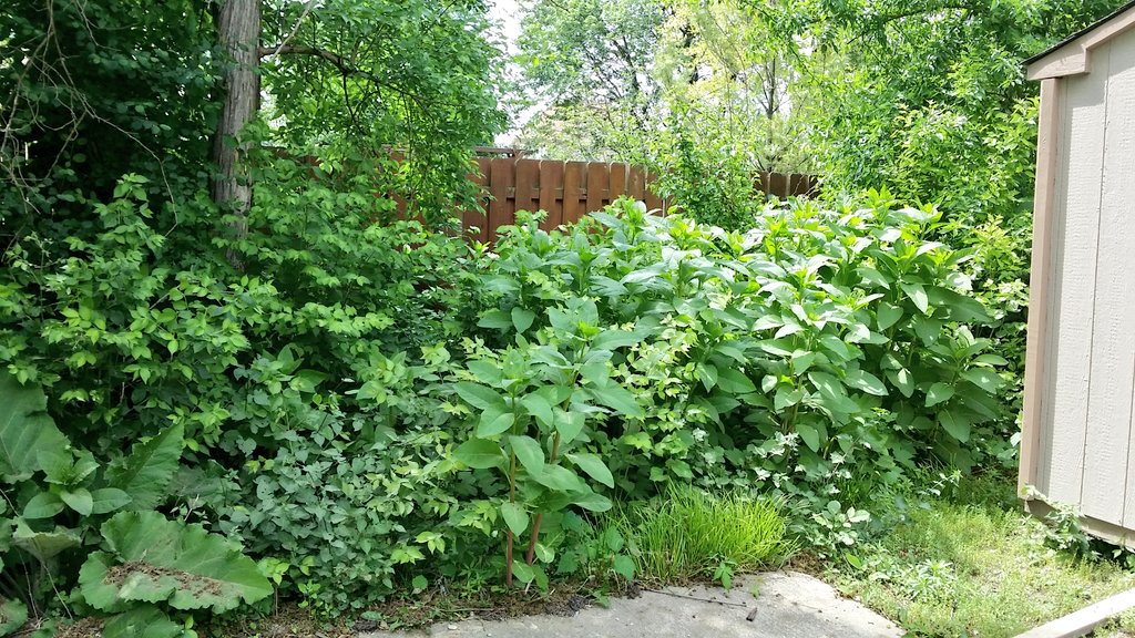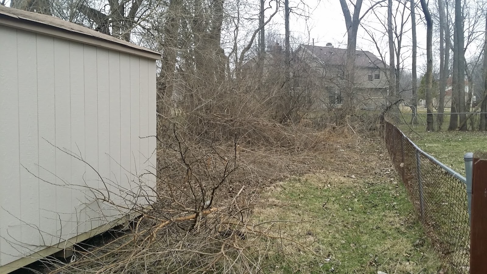 We call it the side lot, but it’s really just the extension of our driveway past where it turns toward our garage. It’s probably about 30 feet wide, and as long as our back yard. I cut down everything i could reach back there, aside from the giant Osage trees.