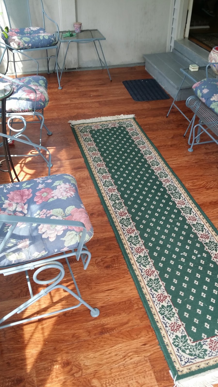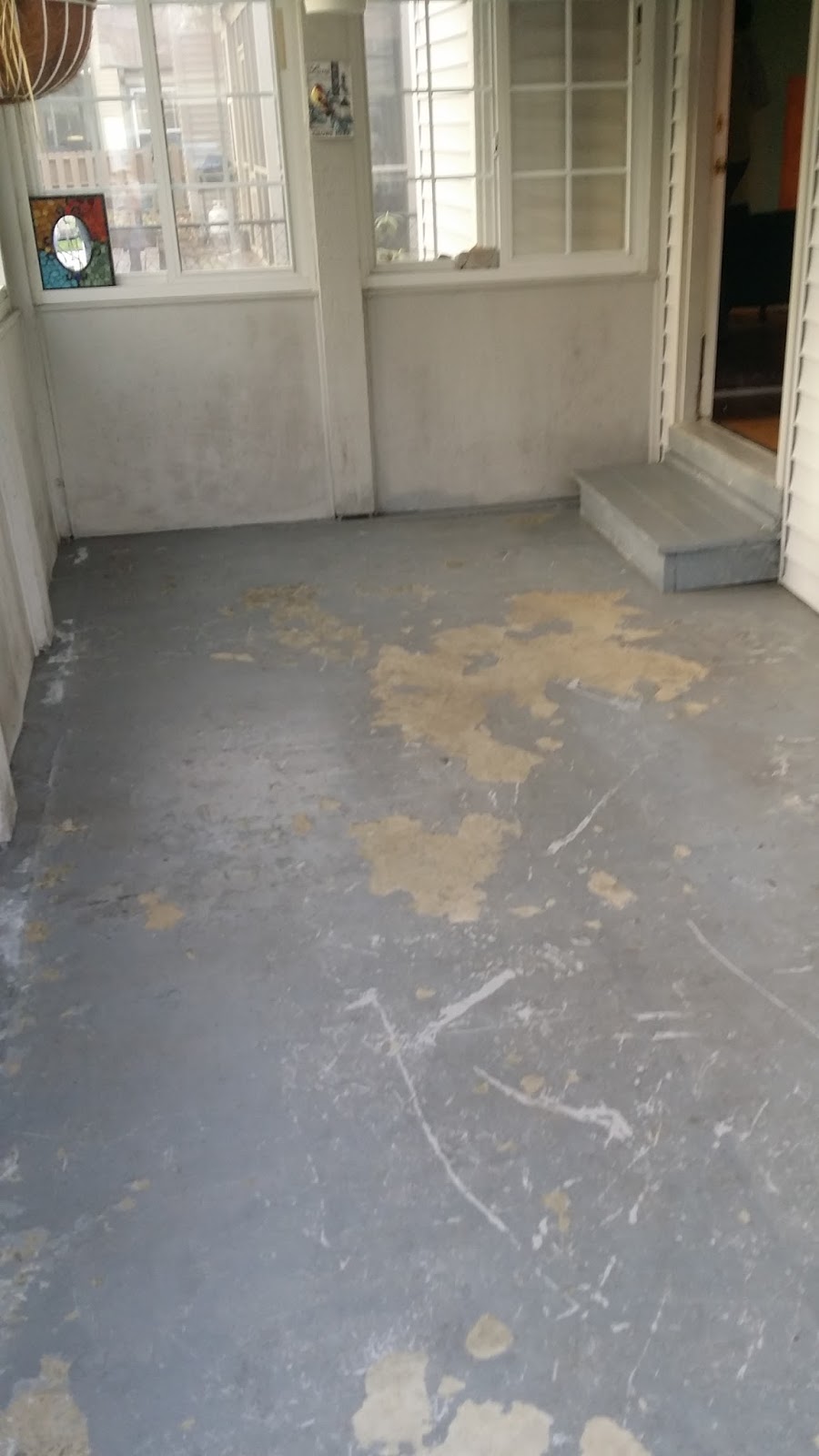 I wasn’t quite sure what to get my grandmother for her birthday when I had the good and possibly a bit ambitious idea to put down new flooring in her screened-in back porch. She had been complaining about her floor for some time, which was just peeling paint on concrete.